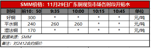 11月29日广东铜现货市场各时段升贴水(第二时段10:00)【SMM价格】