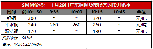 11月29日广东铜现货市场各时段升贴水(第三时段10:15)【SMM价格】