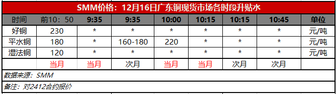 12月16日广东铜现货市场各时段升贴水(第二时段10:00)【SMM价格】