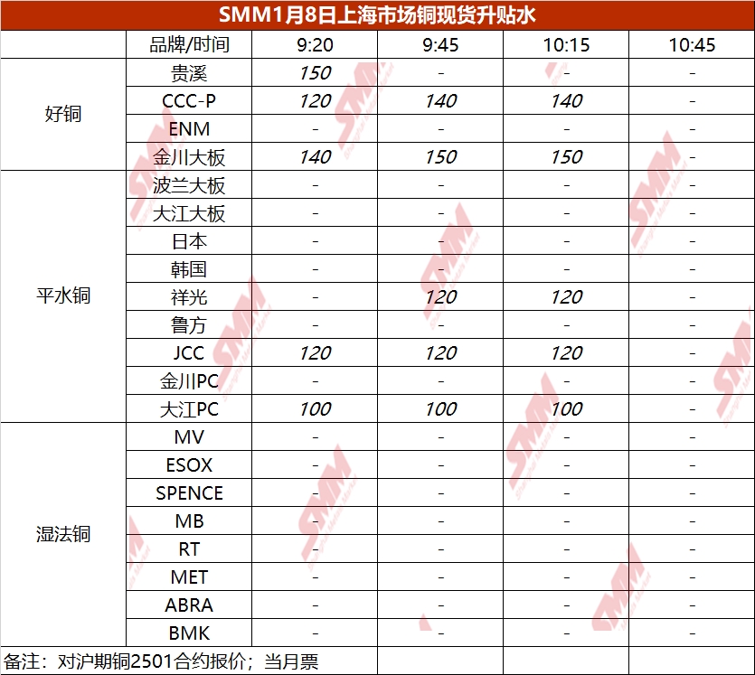 1月8日上海市场铜现货升贴水(第三时段)【SMM价格】