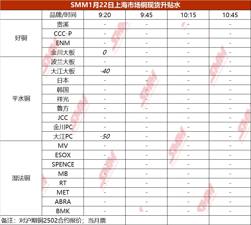 1月22日上海市场铜现货升贴水(第一时段)【SMM价格】