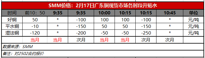 2月17日广东铜现货市场各时段升贴水(第三时段10:15)【SMM价格】