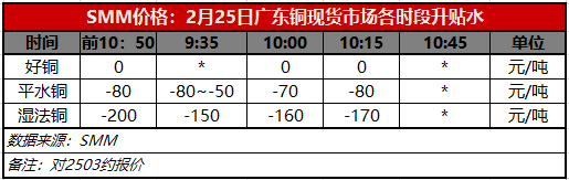 2月25日广东铜现货市场各时段升贴水(第三时段10:15)【SMM价格】