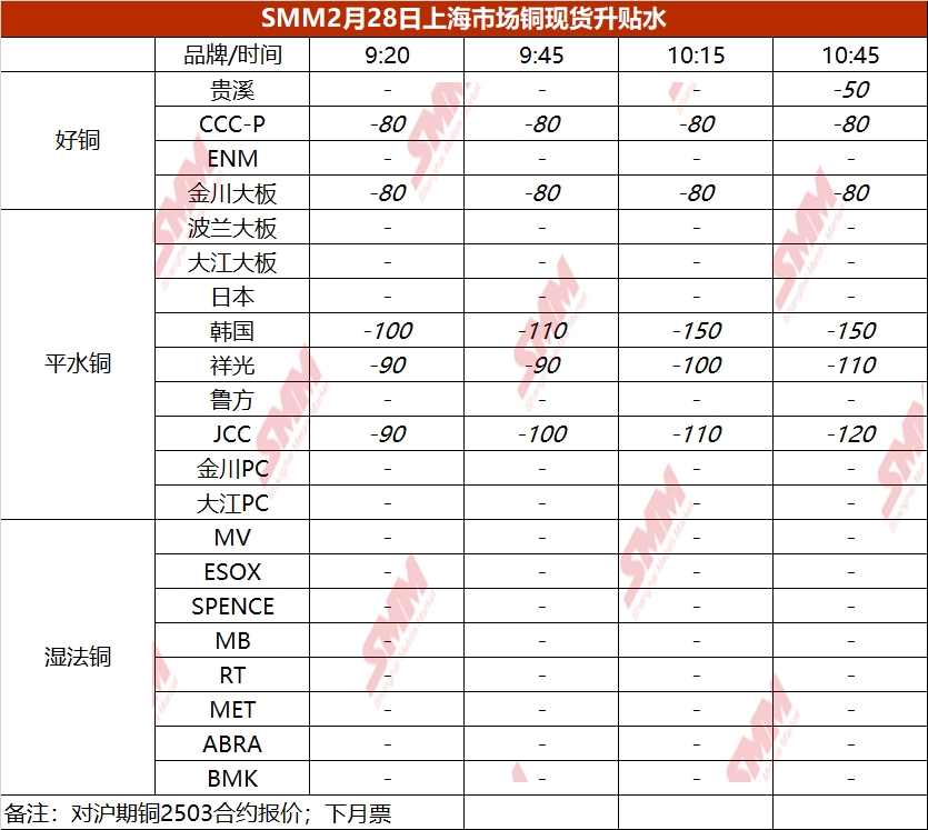 2月28日上海市场铜现货升贴水(第四时段)【SMM价格】