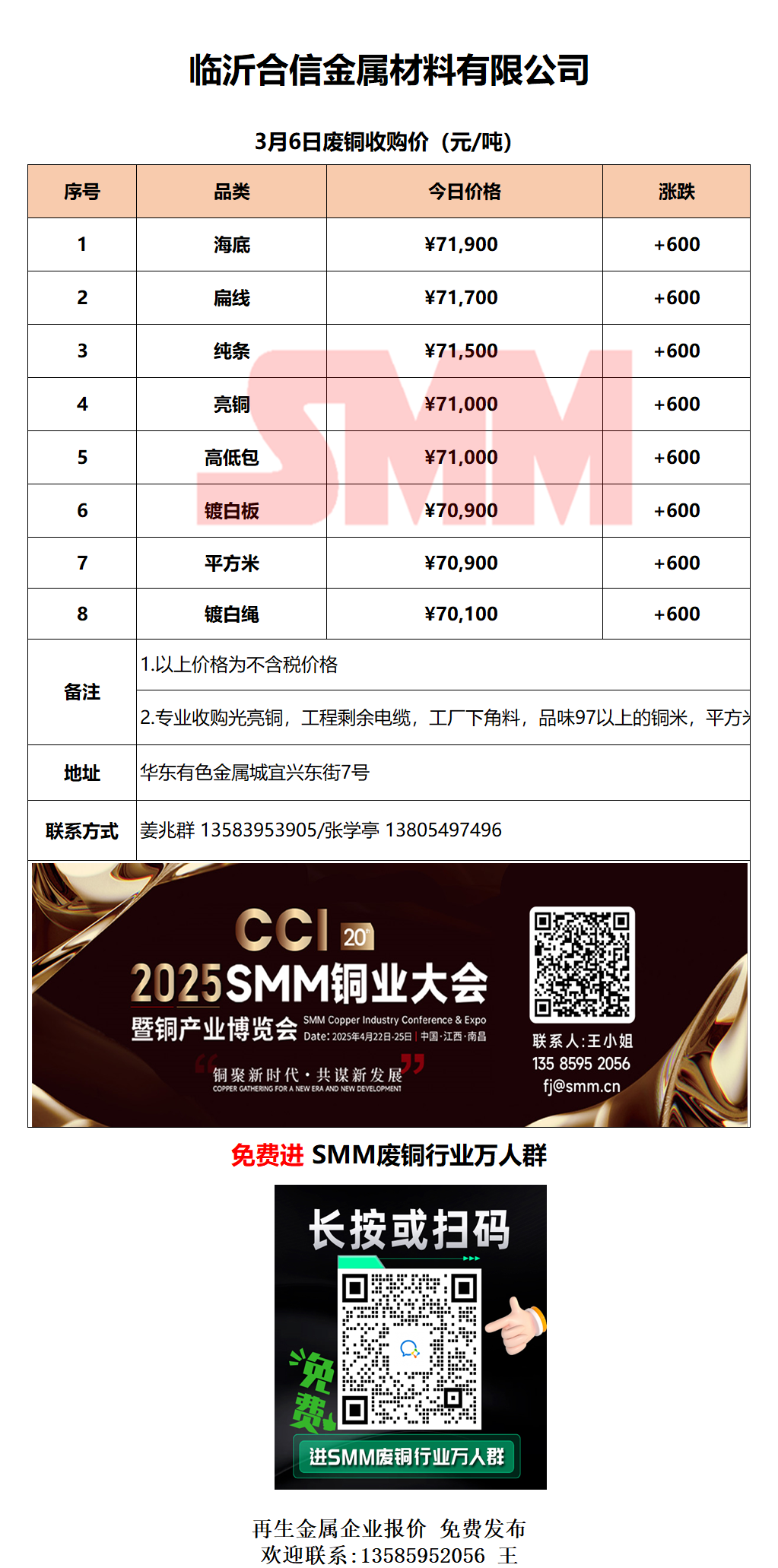今日临沂合信金属 废铜采购报价已更新,有货的朋友欢迎联系我们!