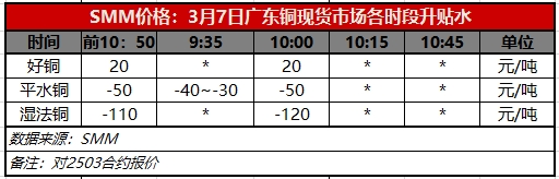 3月7日广东铜现货市场各时段升贴水(第二时段10:00)【SMM价格】
