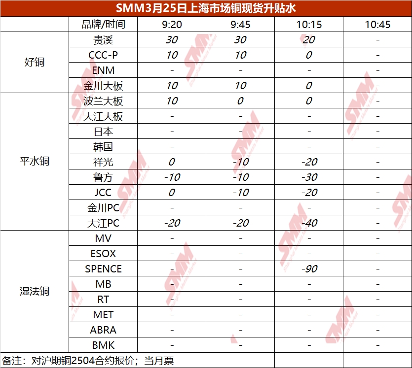 3月25日上海市场铜现货升贴水(第三时段)【SMM价格】