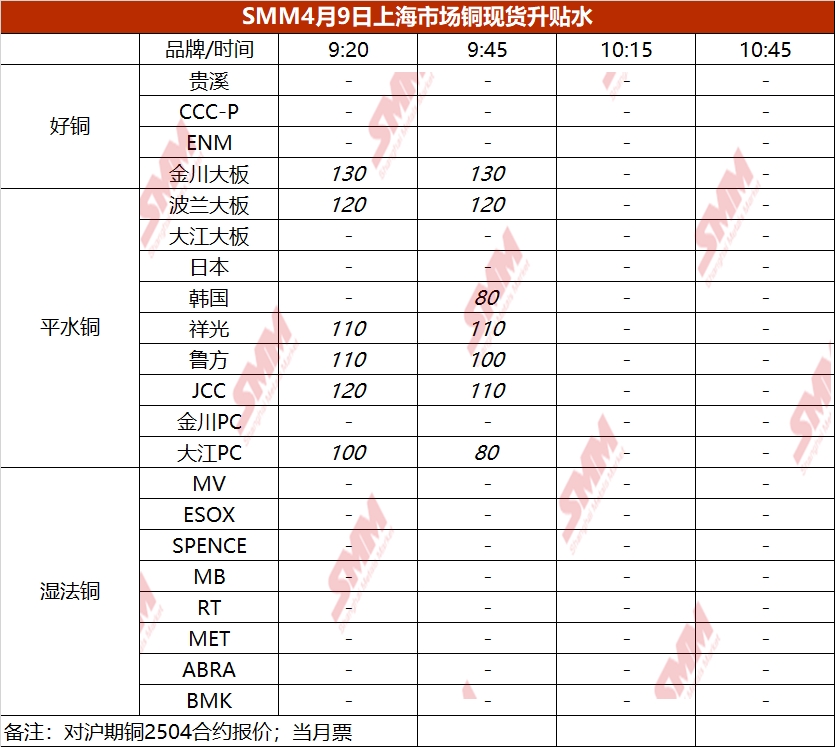 4月9日上海市场铜现货升贴水(第二时段)【SMM价格】