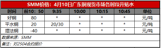 4月10日广东铜现货市场各时段升贴水(第一时段9:30)【SMM价格】