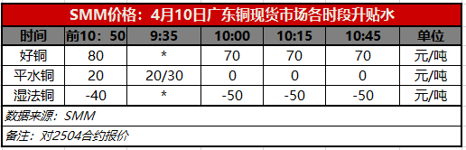 4月10日广东铜现货市场各时段升贴水(第四时段10:45)【SMM价格】