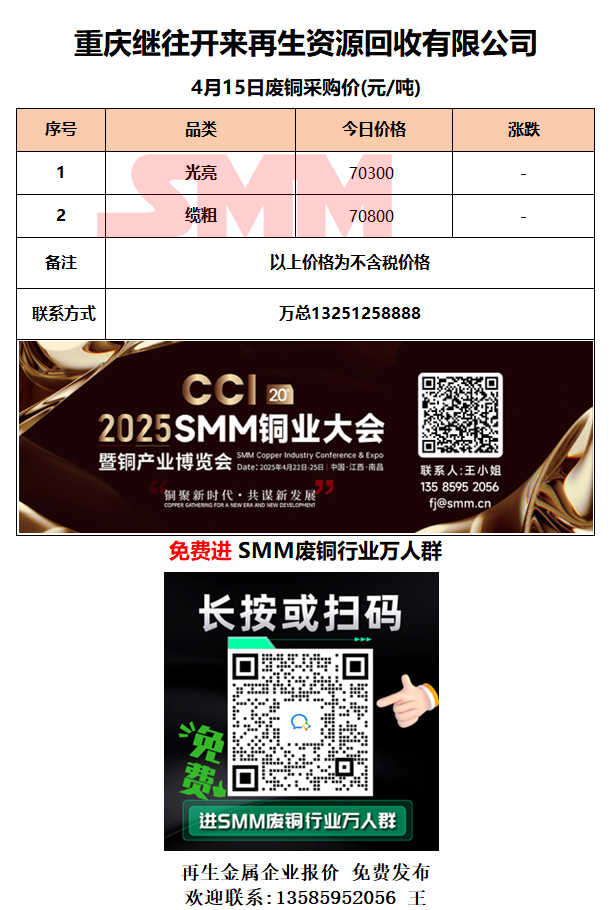4月15日重庆继往开来 废铜采购报价