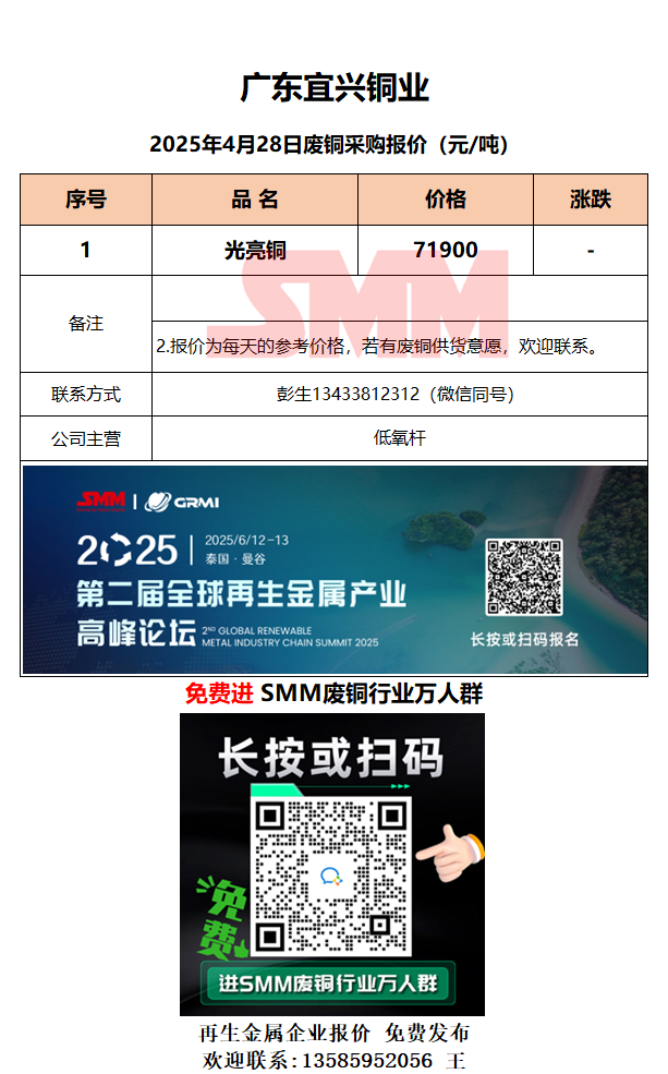 4月28日广东宜兴 废铜采购报价