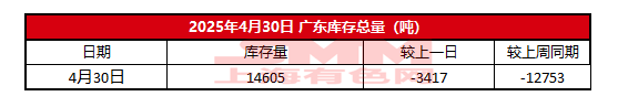 2025年4月30日广东电解铜库存【SMM数据】