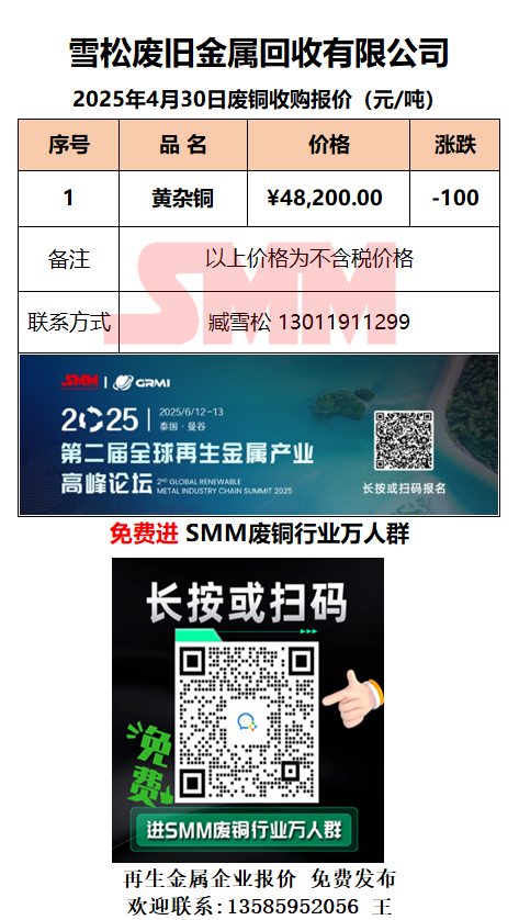 今日雪松废旧 废铜采购报价已更新,有货的朋友欢迎联系我们!
