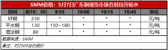 5月7日广东铜现货市场各时段升贴水(第一时段9:30)【SMM价格】