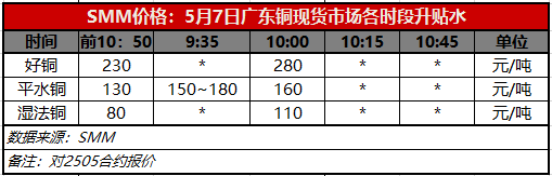 5月7日广东铜现货市场各时段升贴水(第二时段10:00)【SMM价格】