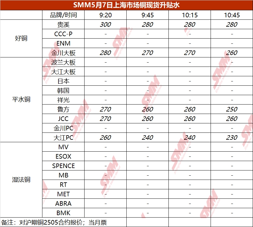 5月7日上海市场铜现货升贴水(第四时段)【SMM价格】