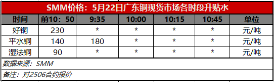 5月22日广东铜现货市场各时段升贴水(第一时段9:30)【SMM价格】