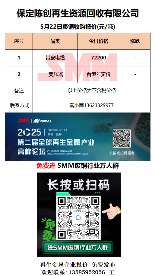 5月22日保定陈创 废铜采购报价