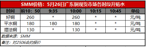 5月26日广东铜现货市场各时段升贴水(第二时段10:00)【SMM价格】