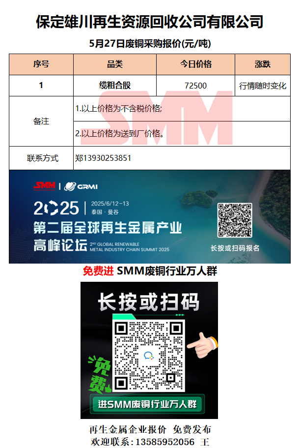 今日保定雄川 废铜采购报价已更新,有货的朋友欢迎联系我们!