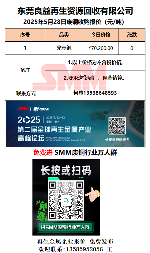 5月28日东莞良益 废铜采购报价