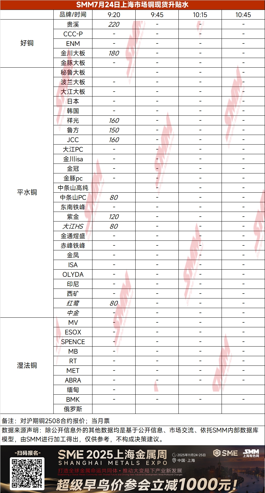 7月24上海市场铜现货升贴水(第一时段)【SMM价格】