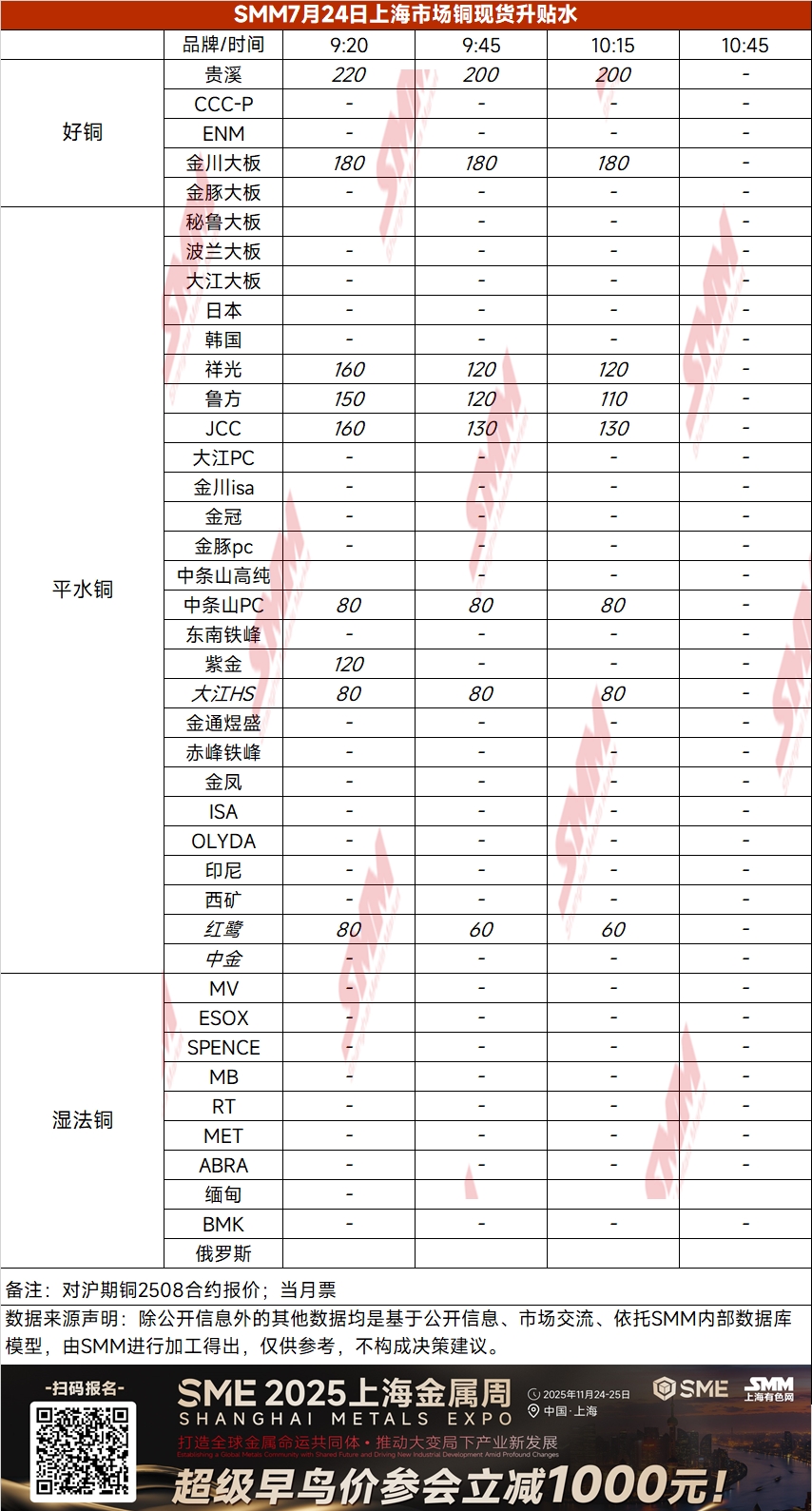 7月24日上海市场铜现货升贴水(第三时段)【SMM价格】