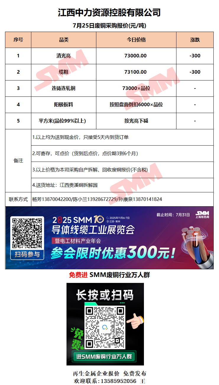 今日江西中力 废铜采购报价已更新,有货的朋友欢迎联系我们!