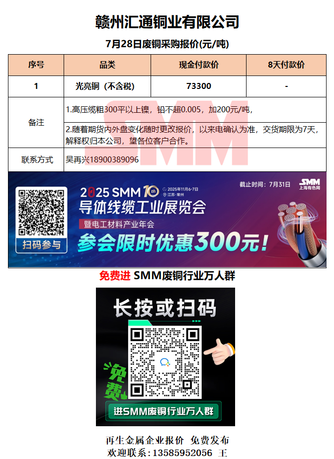 今日赣州汇通 废铜采购报价已更新,有货的朋友欢迎联系我们!