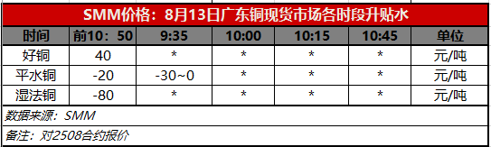8月13日广东铜现货市场各时段升贴水(第一时段9:30)【SMM价格】