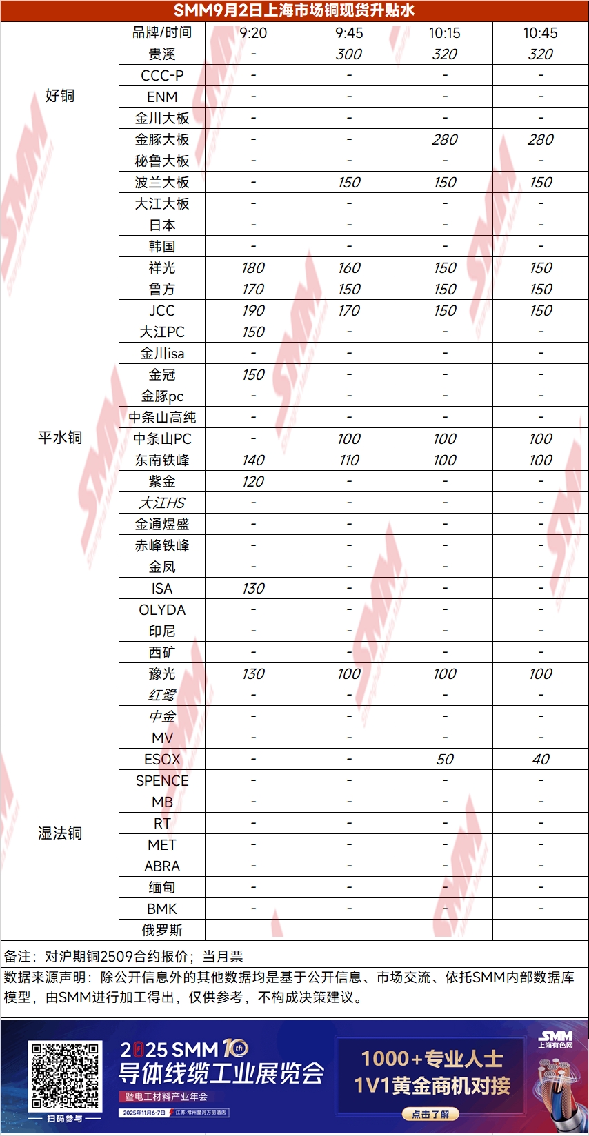 9月2日上海市场铜现货升贴水(第四时段)【SMM价格】