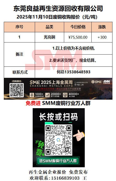 11月10日东莞良益 废铜采购报价