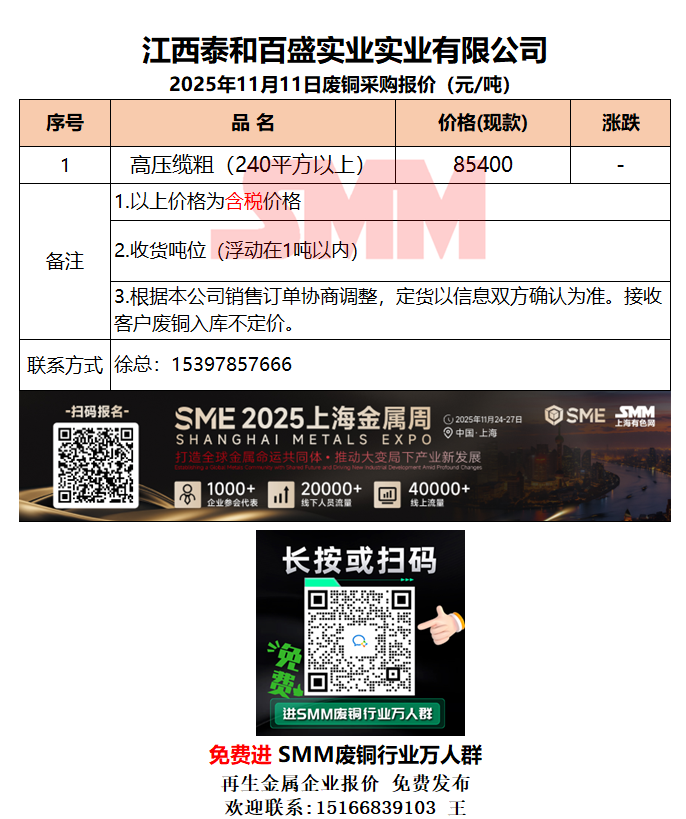 11月11日江西泰和 废铜采购报价