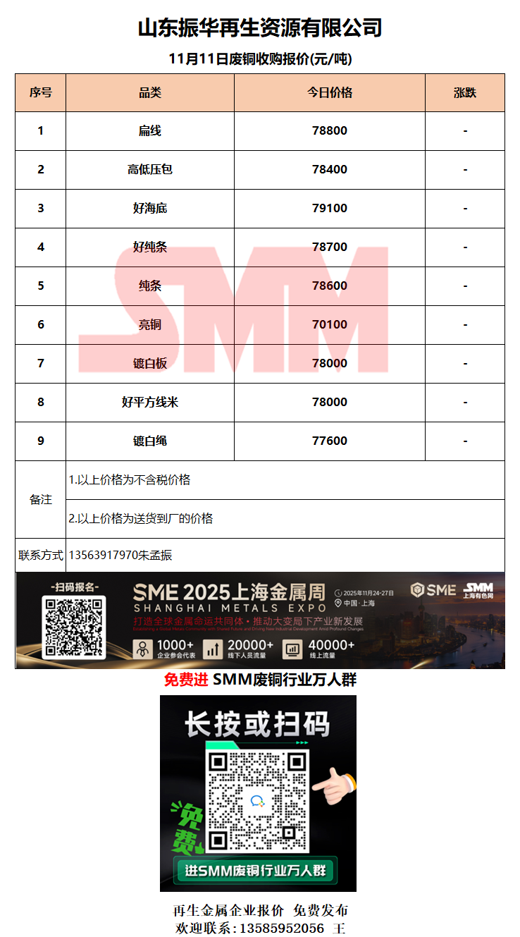 今日山东振华 废铜采购报价已更新,有货的朋友欢迎联系我们!