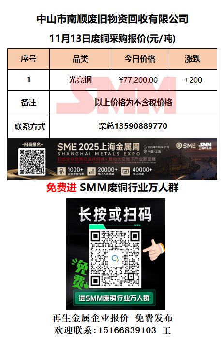 11月13日中山南顺 废铜采购报价