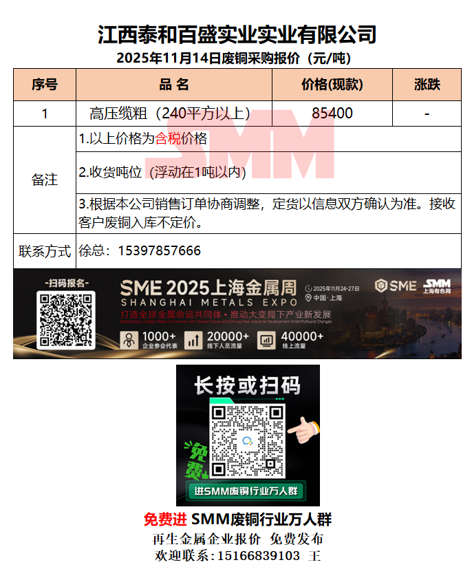 11月14日江西泰和 废铜采购报价