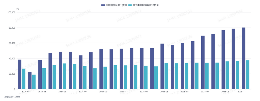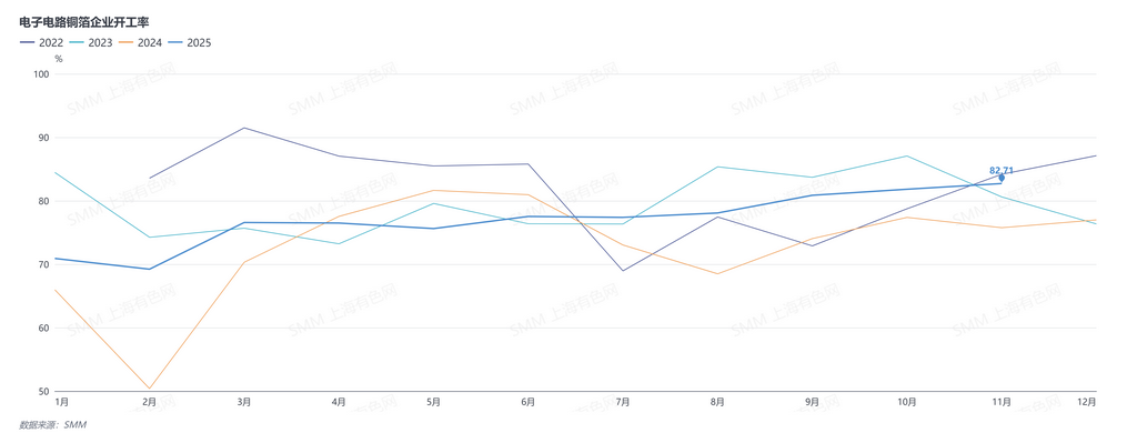 【SMM分析:终端需求多点开花 铜箔行业延续高景气度】据SMM,2025年11月中国铜箔企业的开工率86.30%,环比上升2.08个百分点,同比上升10.82个百分点......