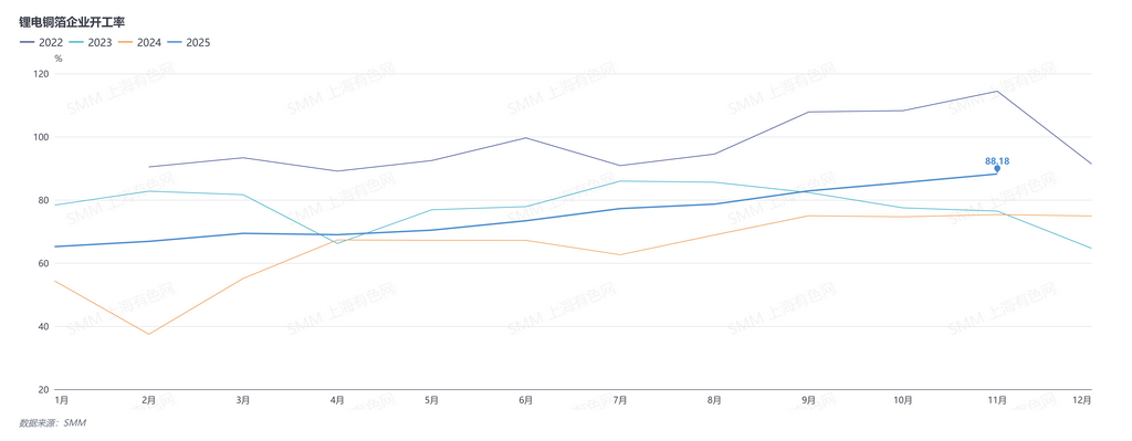 2025年11月铜箔企业开工率86.30%
