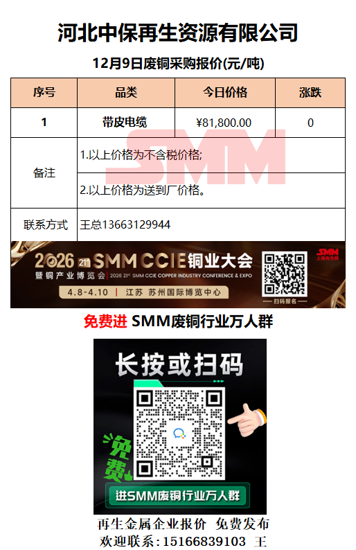 12月9日河北中保 废铜采购报价