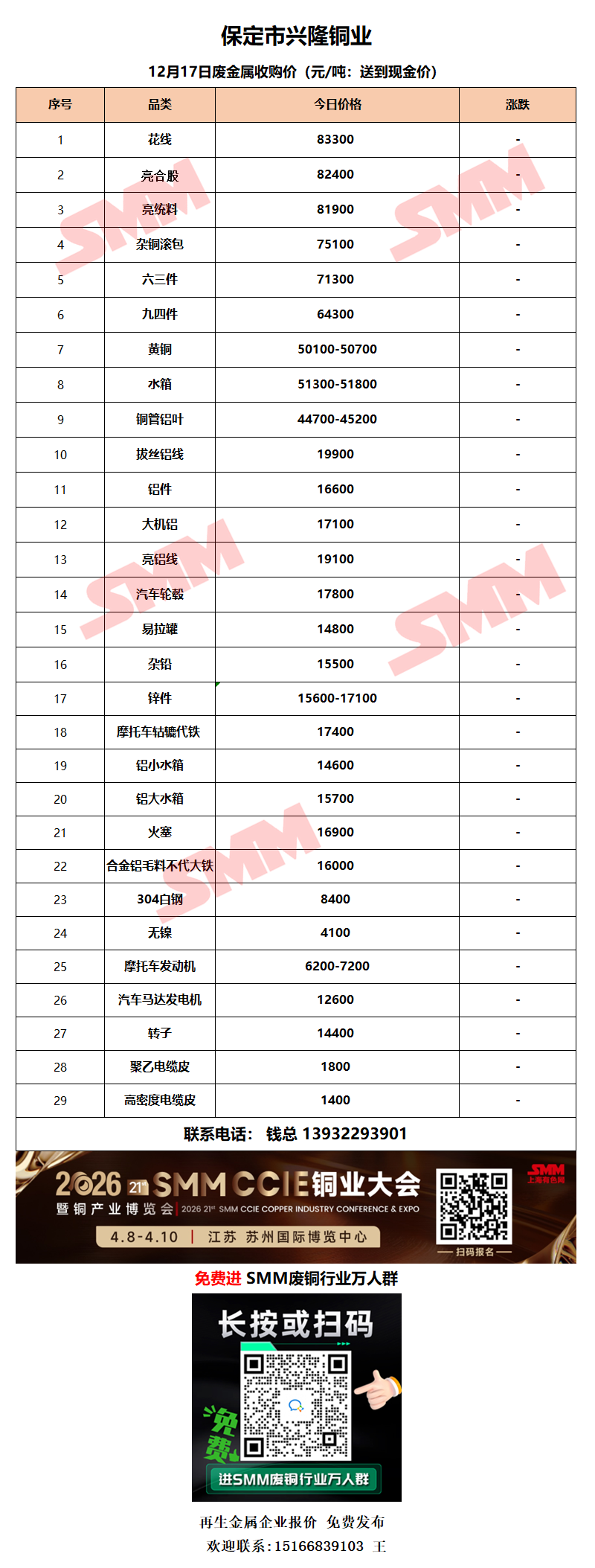 12月17日高诺(衡阳)铜业 废铜采购报价