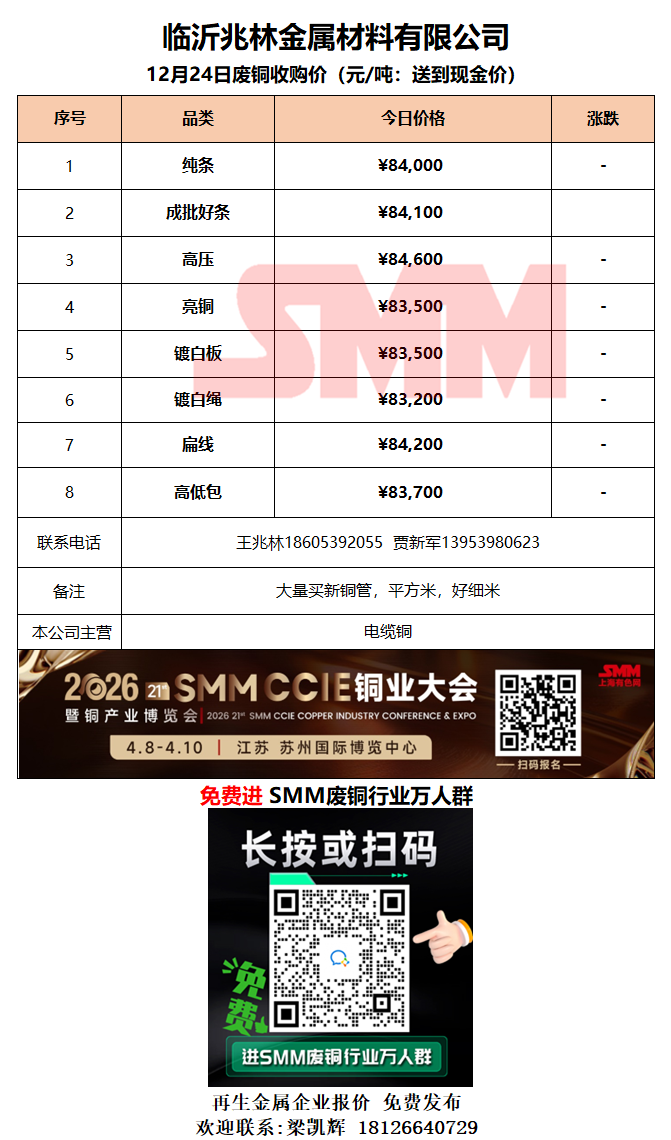 12月24日高诺(衡阳)铜业 废铜采购报价