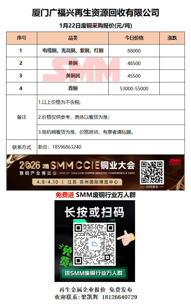 今日厦门广福兴 废铜采购报价已更新,有货的朋友欢迎联系我们!