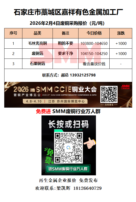2月4日嘉祥有色金属 废铜采购报价