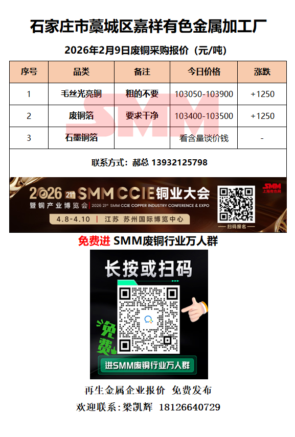 2月9日高诺(衡阳)铜业 废铜采购报价