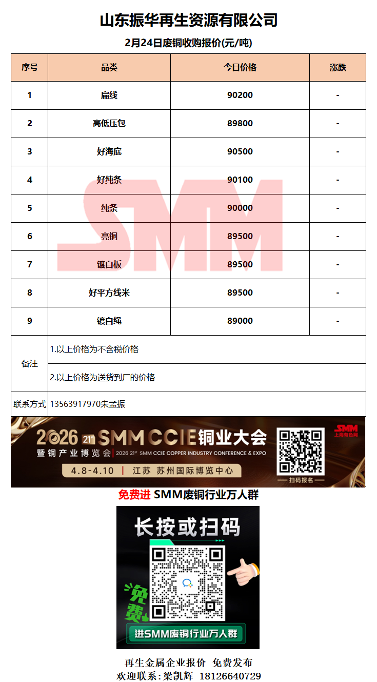 2月24日山东振华 废铜采购报价