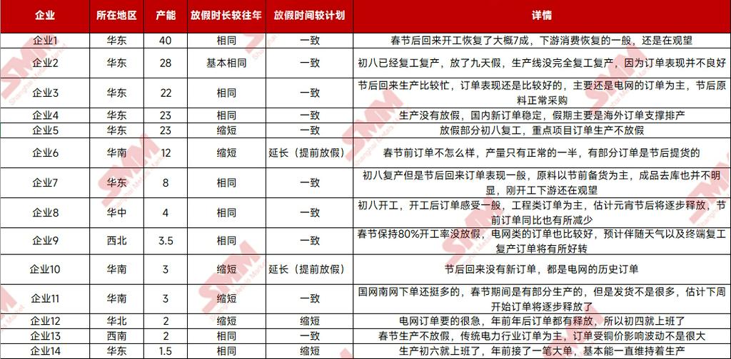 2026年SMM春节假期线缆企业复工调研!【SMM分析】