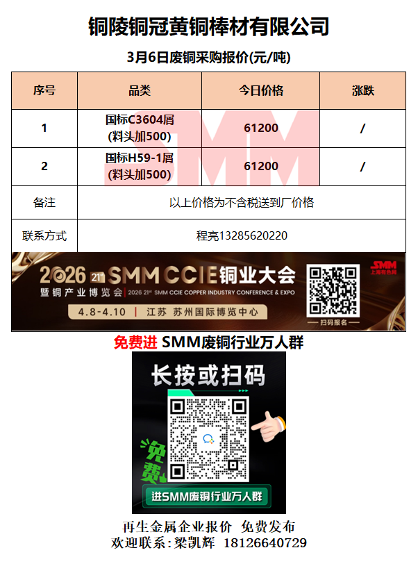 今日铜陵铜冠 废铜采购报价已更新,有货的朋友欢迎联系我们!