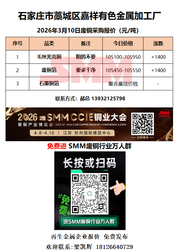 3月10日嘉祥有色金属 废铜采购报价