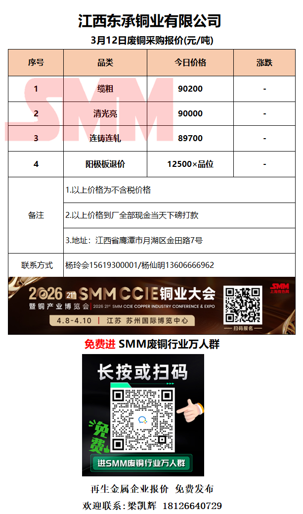 3月12日江西东承 废铜采购报价